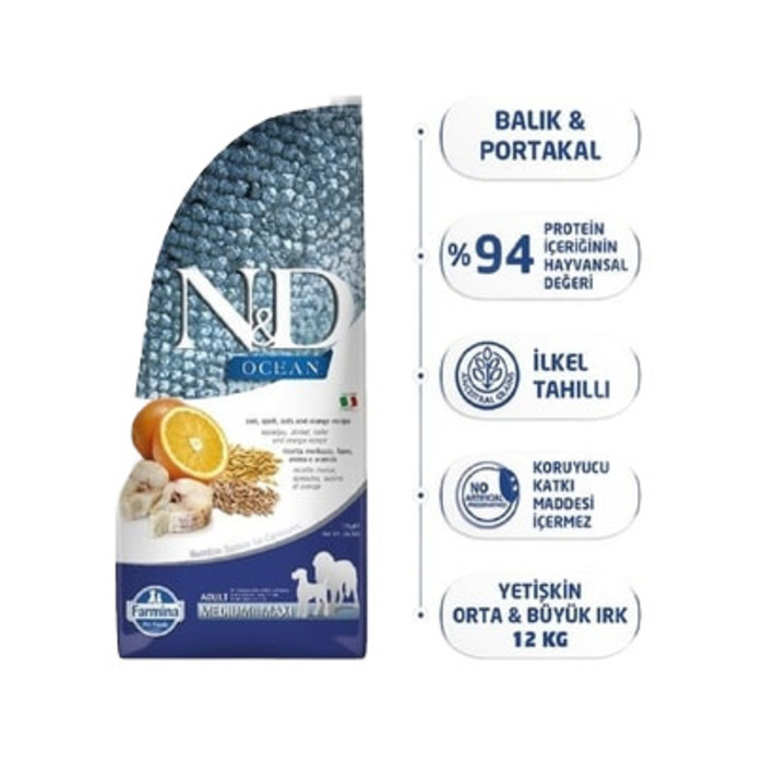 N&D OCEAN DÜŞÜK TAHILLI BALIK-PORTAKALLI YETİŞKİN KÖPEK MAMASI 2.5KG